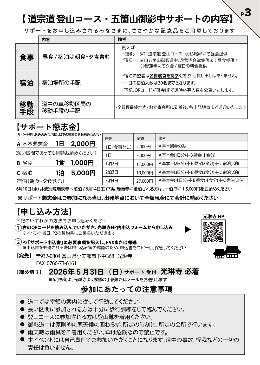 FAX・郵送でお申込みされた方には、6月上旬に、光琳寺より確認のお手紙をお送りします。