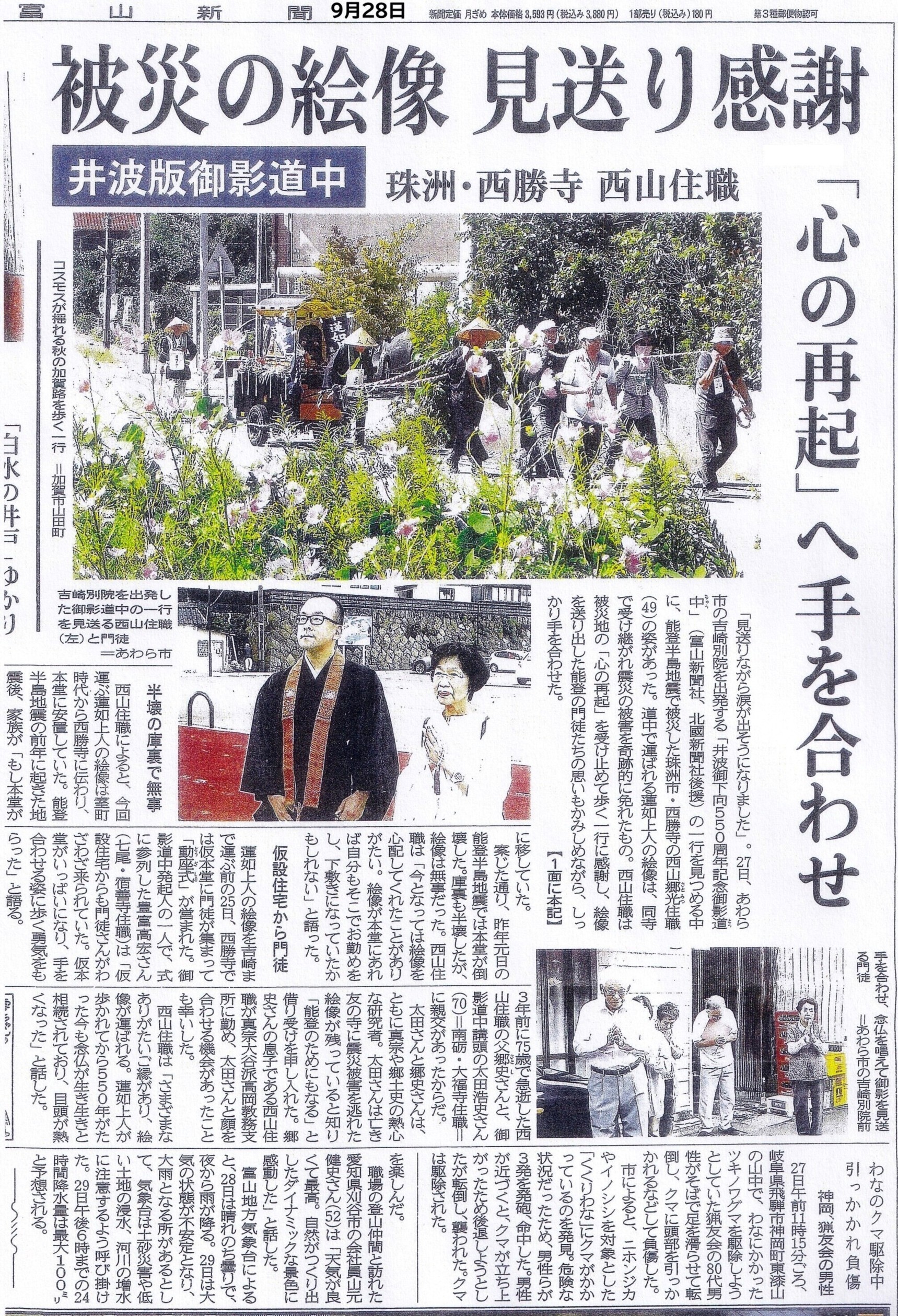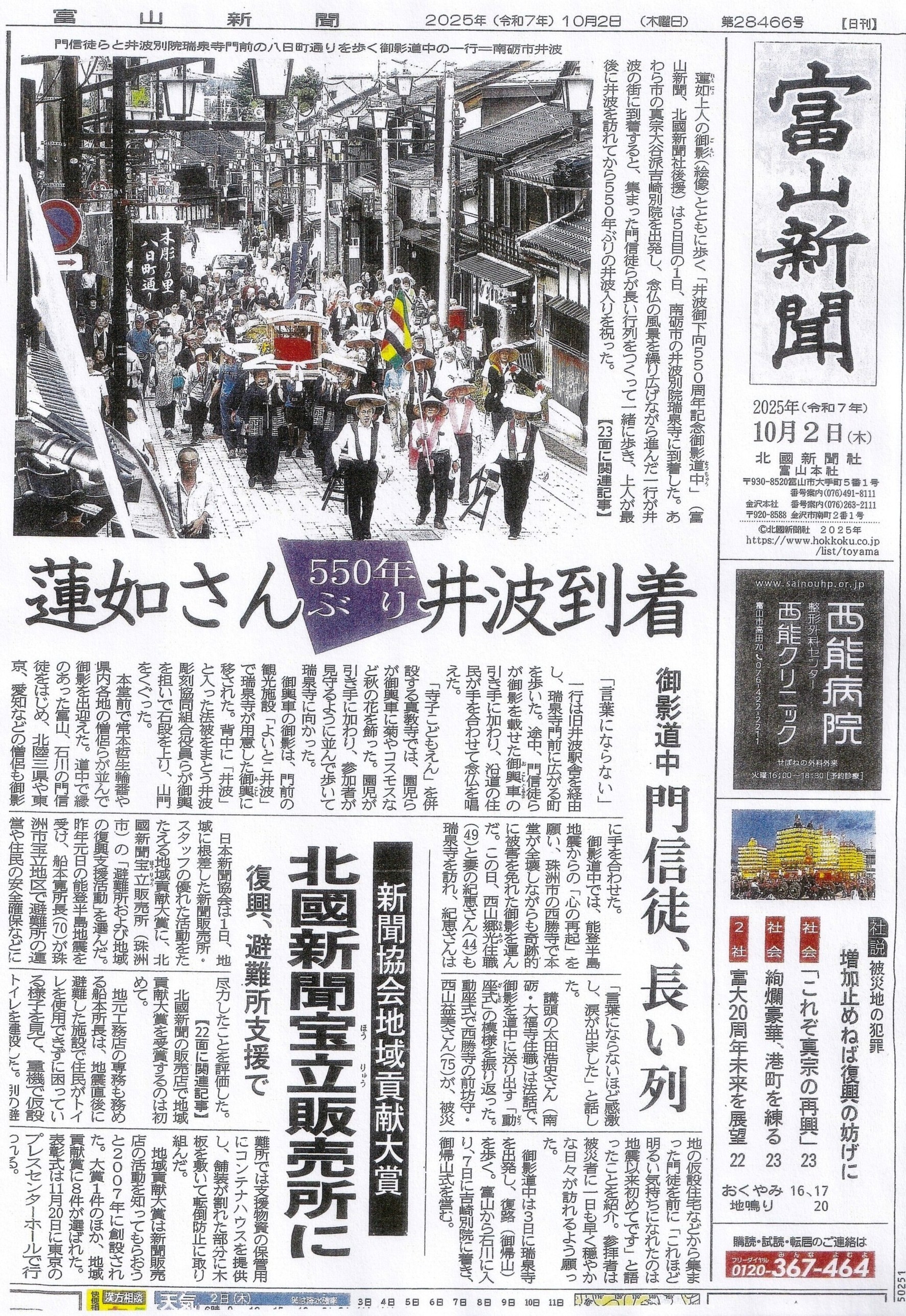 ・2025年10月2日「蓮如さん 550年ぶり 井波到着」