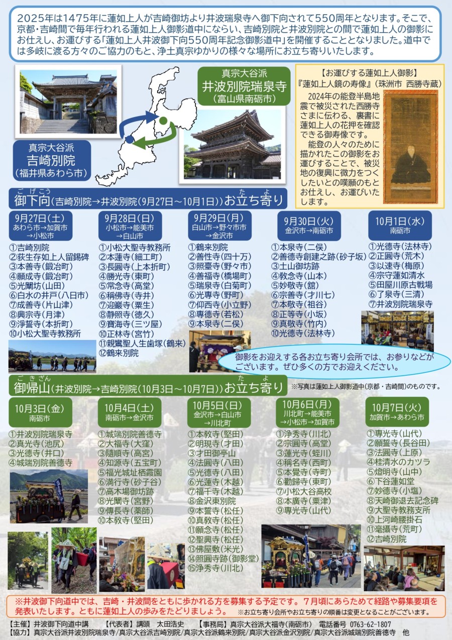 2025年9月27日から10月7日まで、「蓮如上人井波御下向」という行事がありまして、